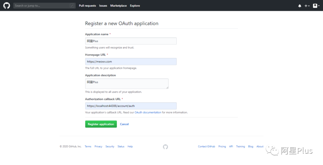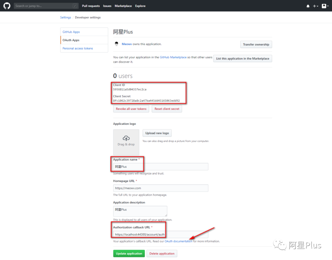 { ... "Github": { "UserId": 13010050, "ClientID": "5956811a5d04337ec2ca", "ClientSecret": "8fc1062c39728a8c2a47ba445dd45165063edd92", "RedirectUri": "https://localhost:44388/account/auth", "ApplicationName": "阿星Plus" }}