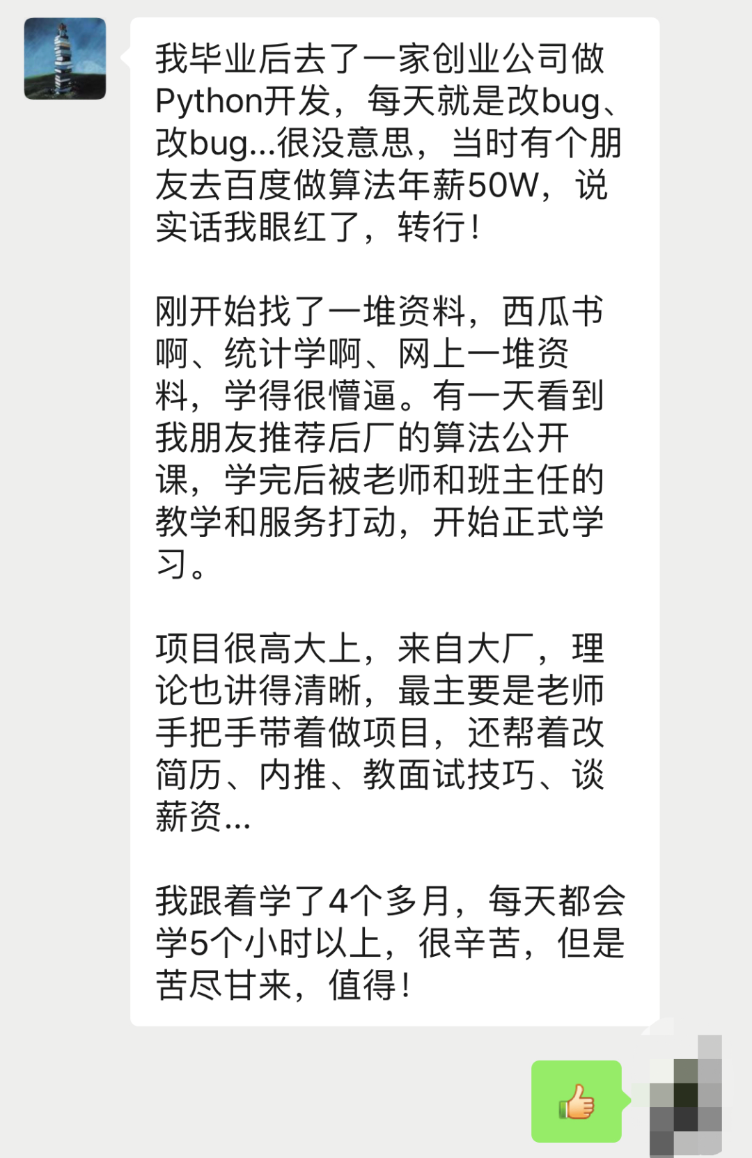 当当当当,关注我的一位粉丝转行做算法工程师了,滴滴,年薪40W那种!