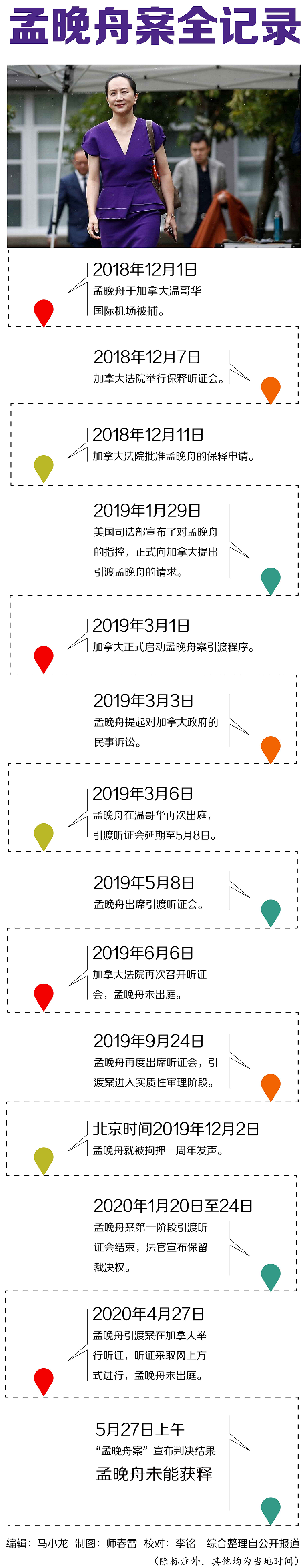 加拿大当地时间5月27日,“孟晚舟案”判决结果公布。加拿大法院认定孟晚舟符合“双重犯罪”标准,对其引渡案将继续审理。2018年底,孟晚舟在加拿大被捕。新京报记者梳理了“孟晚舟案”始末,详情见下图。