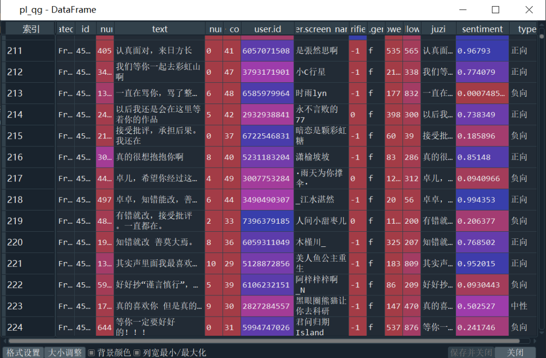,40%~60%为中性(绿色),60%以上为正向(红色)。
