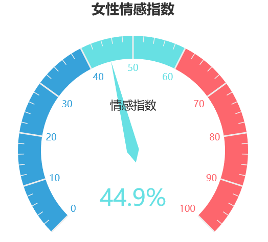 女性网友评论的情感指数为44.9%,情感倾向是中性的,明显高于男性的,可能是女粉丝比较多的缘故吧。
