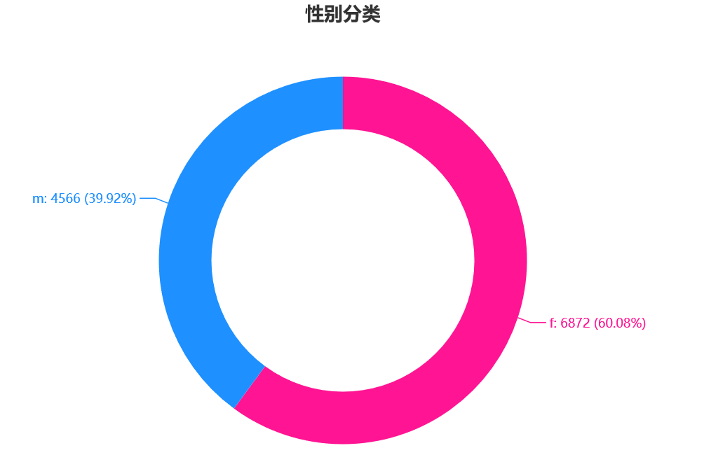 通过这张圆环图可以得知评论网友60%为女性,男性占40%。