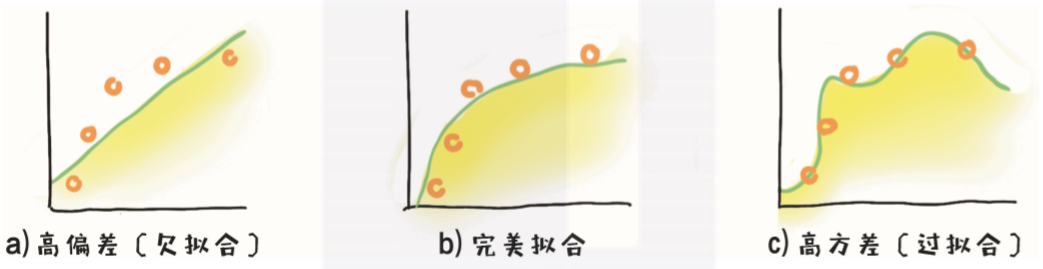 在绝大多数情况下,应该尽可能利用标签信息,这样得到的模型效果会更好。但是很多时候,是否能拥有标签并不是由个体决定的。例如,很多平台是没有欺诈用户的标签的,此时训练一个监督模型就很困难,而半监督及无监督学习可以起到一定的作用。对于模型学习的结果,主要关心两件事:欠拟合(underfit)和过拟合(overfit)。欠拟合是指模型拟合程度不高,数据距离拟合曲线较远,或指模型没有很好地捕捉到数据特征,不能很好地拟合数据。换言之,模型在学习的过程中没有很好地掌握它该掌握的知识,模型学习的偏差较大。过拟合是指为了得到一致假设而使假设变得过度严格,即模型学习得太过详细,把一些个例的特点作为共性,使得模型的泛化能力较低。图3-3很好地解释了过拟合与欠拟合的含义,a图表示欠拟合,b图表示一个良好的拟合,c图则表示过拟合。通俗理解,过拟合就是模型学得过于细致,欠拟合就是学得过于粗糙。模型结构越复杂,通常越倾向于过拟合。而样本量越大,数据分布得到越充分的曝光,模型越不容易过拟合。为了更好地表示过拟合和欠拟合,通常建模的时候会将样本集划分为训练集(Train)和测试集(Test)。