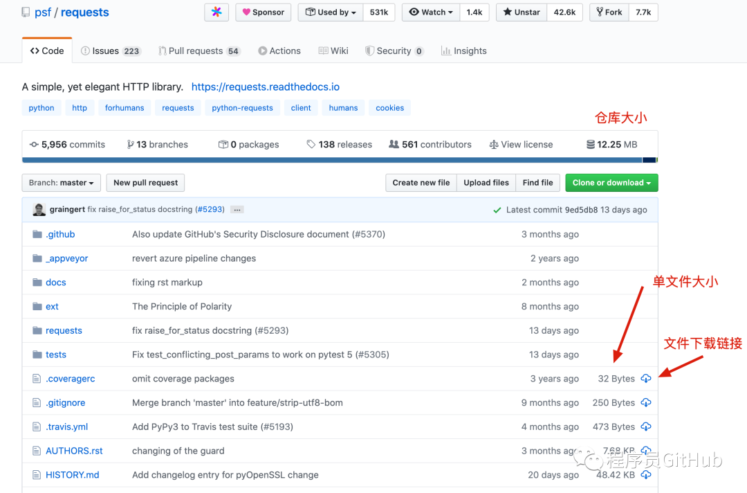 这个问题可以通过 Enhanced GitHub 插件解决。它可以显示仓库大小,每个文件的大小,下载链接和复制文件内容的选项。