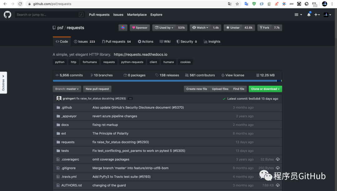 安装之后随便打开一个 GitHub 上的项目,效果如下: