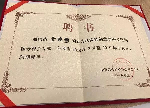 会议向闫莺等17名专家颁发了"区块链创业学院及区块链专委会专家"的聘书。