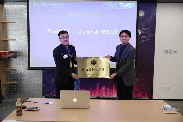 在会上北京、广州、深圳及重庆的四家机构成为第一批被授予"区块链创业学院"的授牌机构。