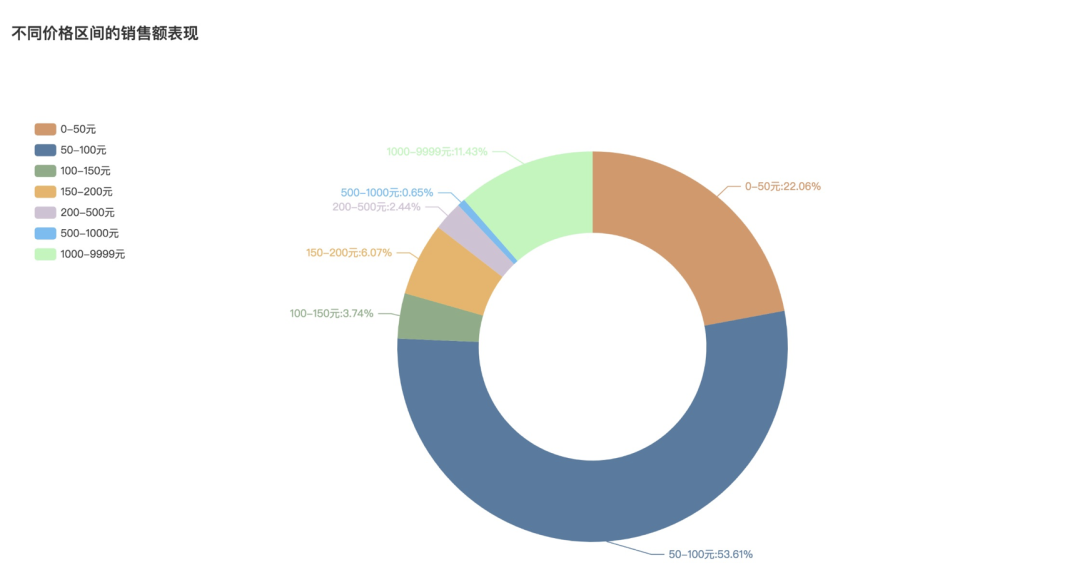 pie3.set_global_opts(title_opts=opts.TitleOpts(title='不同价格区间的销售额表现'),