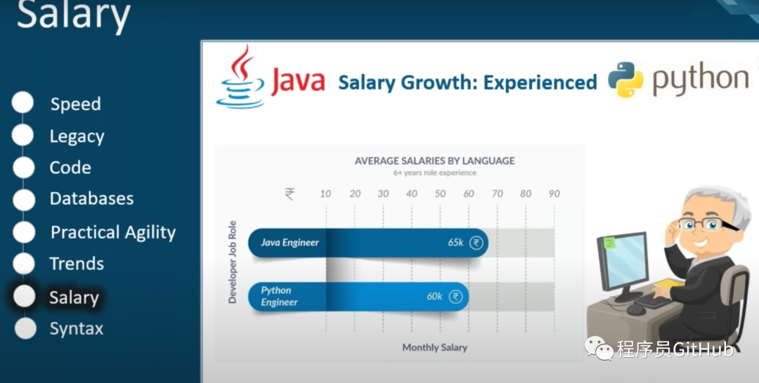 6 年以上的资深工程师,明显 Java 程序员的薪资要比 Python 高一些,但是也只是略高一点点。