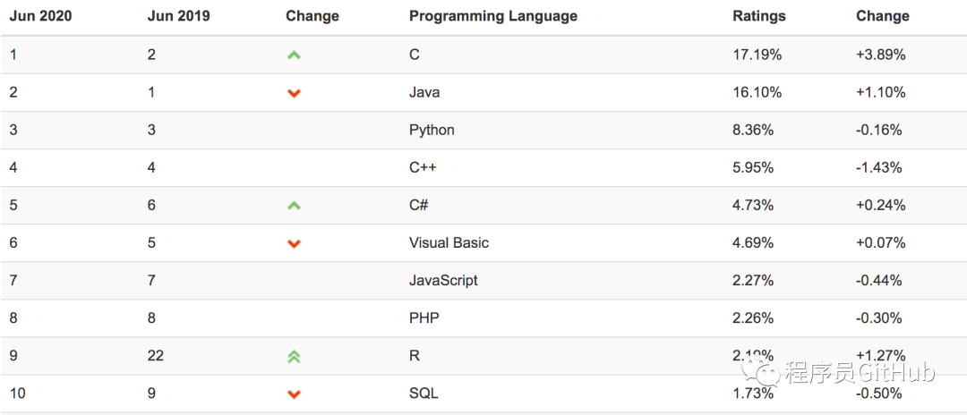 TIOBE 2020 年 6 月份的编程语言排行榜已经出来了。
