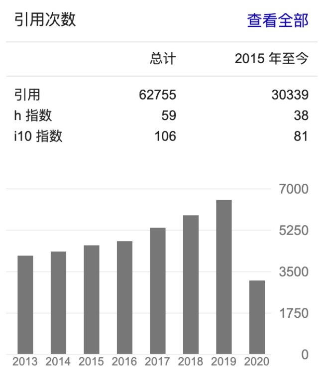 图 Nocedal 教授近年发表论文的饮用情况统计(数据来源:Google scholar)