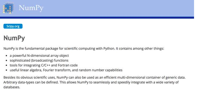 Numpy(Numerical Python)提供了python对多维数组对象的支持:ndarray,具有矢量运算能力,快速、节省空间。numpy支持高级大量的维度数组与矩阵运算,此外也针对数组运算提供大量的数学函数库。
