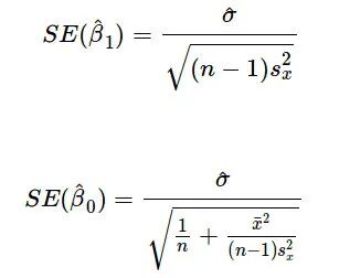 上述公式给出了斜率和截距的预测点,但这些估值总是存在一些不确定性,这些不确定性可由方差方程量化: