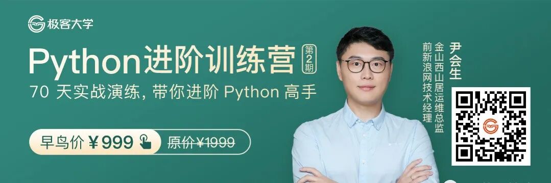 因此,我与极客时间合作的「Python 进阶训练营」全新改版上线,将带你通过 70 天实战演练,手把手带你进阶 Python 高手。