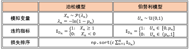 和上贴【伯努利模型】的蒙特卡洛模拟方法类比,将泊松模型的模拟方法总结在下表。