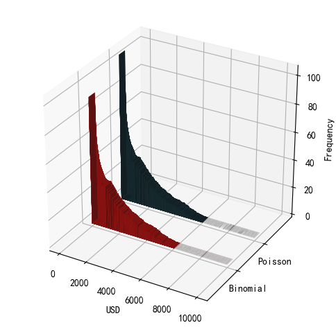 画出两个模型模拟出来的损失分布图也非常相似(尤其在尾部)。