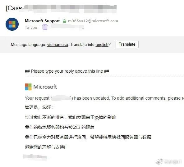 目前微软正在全力追回被盗的服务器,希望能够找回被盗的服务器和数据。