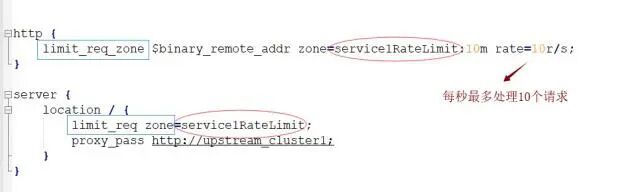 rate:用于设置最大访问速率,rate=10r/s 表示每秒最多处理10个请求。Nginx 实际上以毫秒为粒度来跟踪请求信息,因此 10r/s 实际上是限制:每100毫秒处理一个请求。这意味着,自上一个请求处理完后,若后续100毫秒内又有请求到达,将拒绝处理该请求。