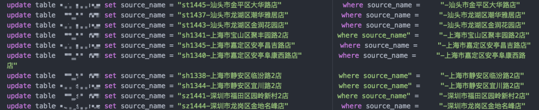 然后开发执行了剩下的SQL,都是和上面的SQL一样,将地址进行更新。执行完成后,开发懵逼了,发现source_name都变成了0,开发赶紧给我打电话说: