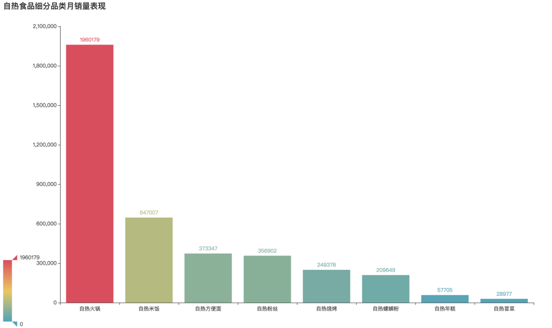 bar1.set_global_opts(title_opts=opts.TitleOpts(title='自热食品细分品类月销量表现'),