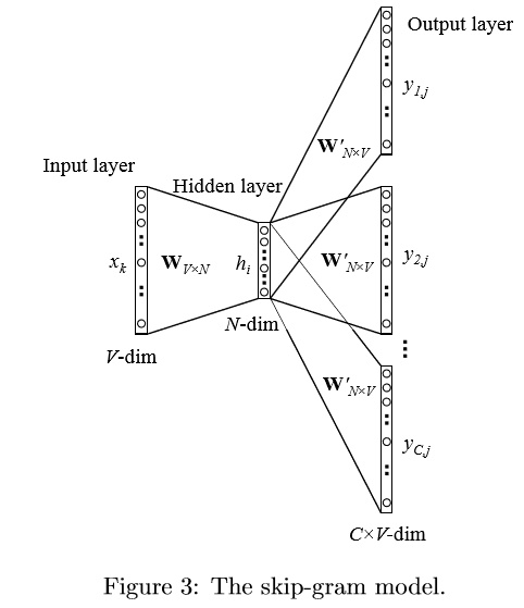 是中心词对应的目标单词中的第 个单词; 是中心词(唯一输入单词); 是第 个输出面上第 个单元的输出值;