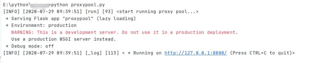 配置项就这些,一目了然。配置完成后即可运行脚本文件proxypool.py开启维护之旅。