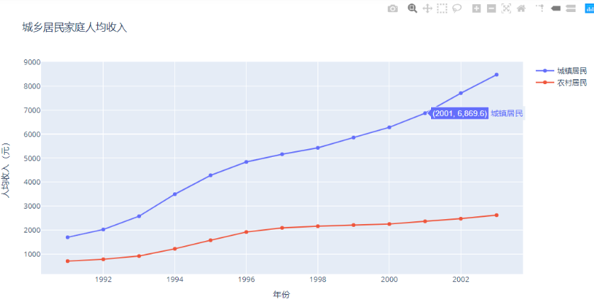 trace0 = go.Scatter(x=df["年份"],y=df["城镇居民"],name="城镇居民")