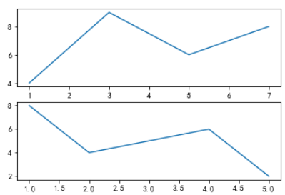 axes2.plot([1,2,4,5],[8,4,6,2])