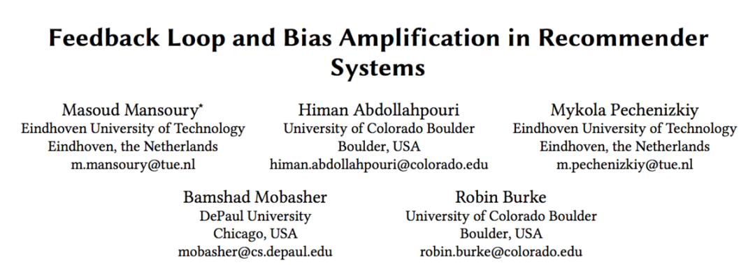 本文介绍的论文题目为:《Feedback Loop and Bias Amplification in Recommender Systems》