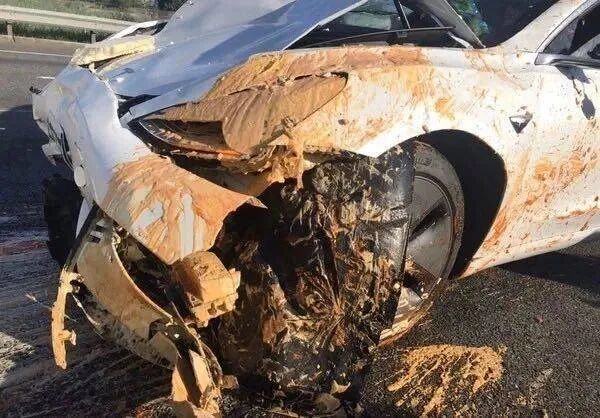 据大众报业 · 齐鲁壹点报道,5 月 25 日,山东高速交警接到报警,祁先生的特斯拉轿车,与路面提示牌发生碰撞。