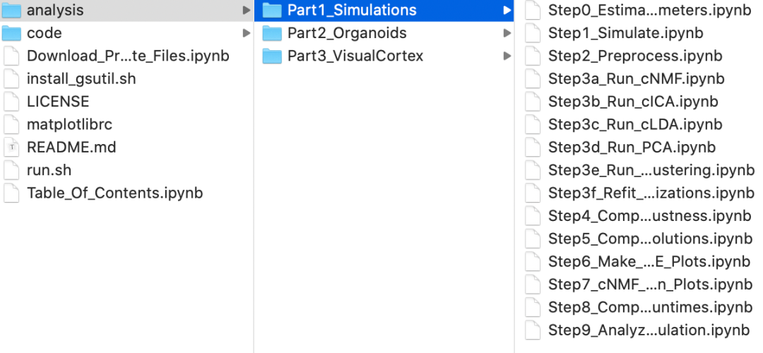 All of the analyzed real datasets are publicly available and the relevant GEO accession codes are included in the manuscript. All of the simulated and real data can be accessed through Code Ocean at the following URL: https://doi.org/10.24433/CO.9044782e-cb96-4733-8a4f-bf42c21399e6. cNMF code is available on Github https://github.com/dylkot/cNMF/ (copy archived at https://github.com/elifesciences-publications/cNMF).