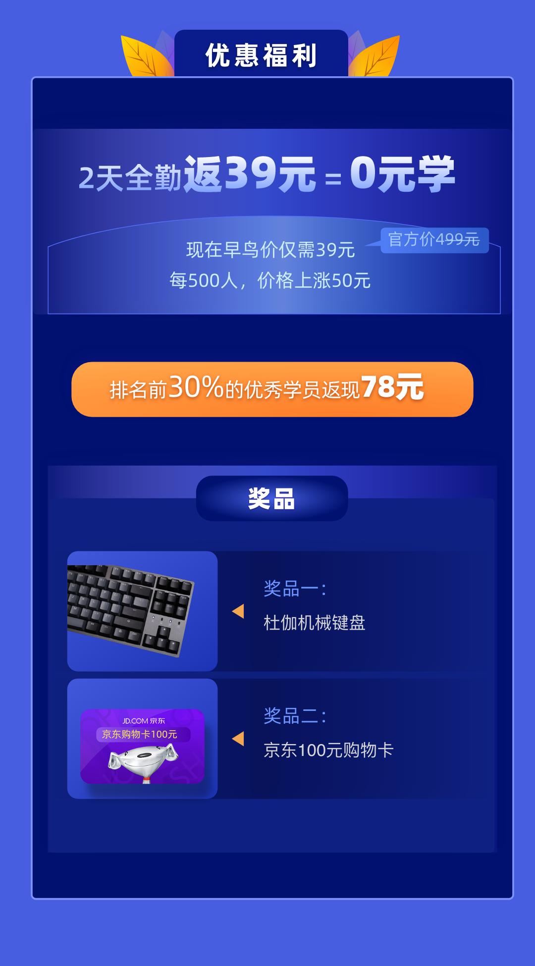 本次训练营开课时间(8月20/21日 19:30),希望各位同学报名后:
