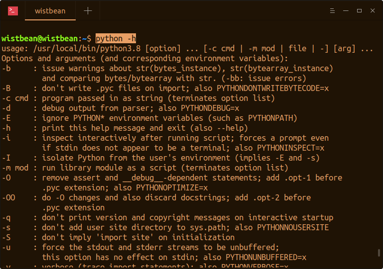 我想你最常用到的 Python 命令就是运行 Python 脚本文件,像这样: