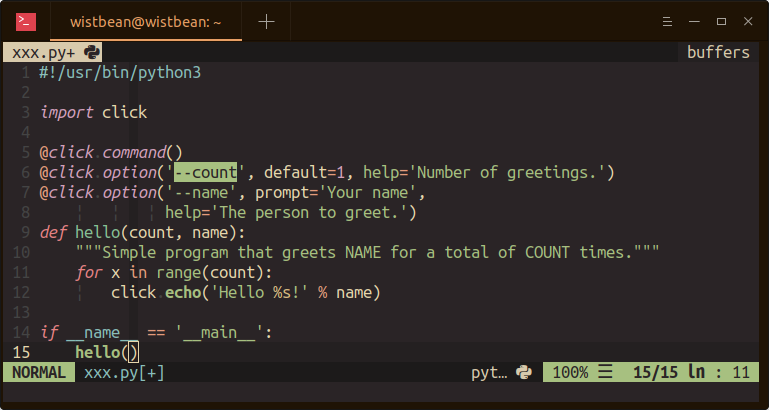 还有其它的命令,你可以通过 python -h 找到相关的解释:可能有时候你也想要提供一些命令给别人使用,Python 内置了一个 argparse 的库,你可以使用它来创建你要提供的命令,比如这样:除此之外,还有一个叫做 click 的第三方库,也是用来创建命令的,不同的是它可以用装饰器的方式实现,你可以直接使用 @click.option 来定义命令选项,用起来相对简单,这是一个官方的例子:当然,它还提供了多种创建命令的方式,你可以在以下链接中找到:https://click.palletsprojects.com/en/6.x/ok,以上就是小帅b今天给你带来的分享,希望对你有帮助,那么我们下回见,peace!