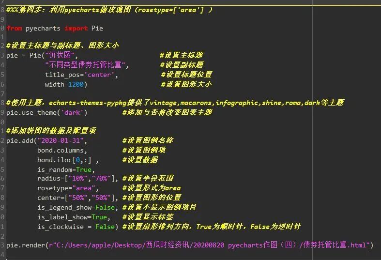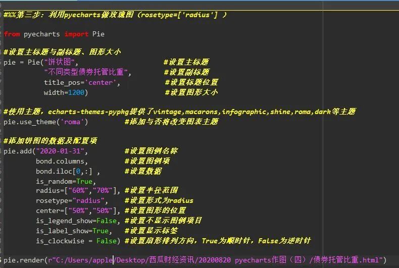 (4)设置标签栏的属性:如Pie.add(“标签名”,X值,Y值,其他属性)radius=["60%","70%"]:设置半径范围