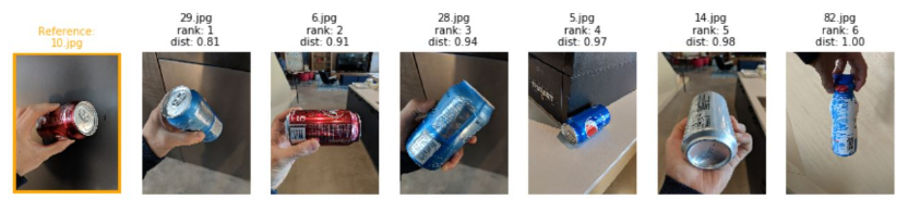该目录提供了构建图像相似度系统的示例和最佳实践,旨在使用户能够基于自己的数据集方便快捷地训练高精度模型。下图为图像检索示例,其中左图为查询图像,右面为与之最相似的 6 幅图像: