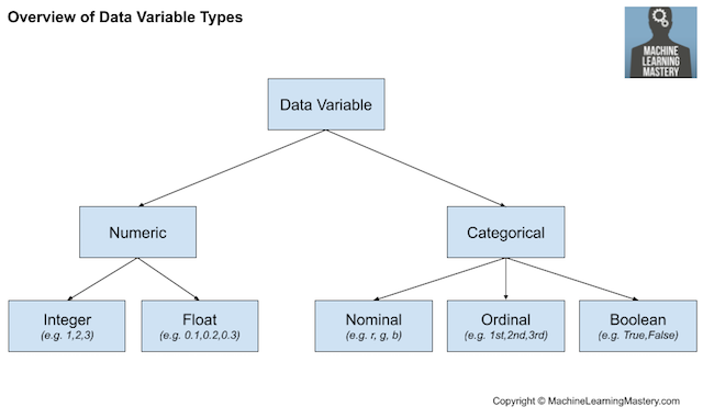统计方法(比如相关性)常用于给输入特征评分。输入特征根据它们的得分进行排序,并选择最大评分对应的特征子集作为模型输入。统计指标的选择取决于输入变量的数据类型,也可以参考一些对于不同统计指标评估的综述。有关如何基于数据类型选取特征选择方法的概述,请参见教程:此外,在预测性建模项目中,我们可能会遇到不同的常见特征选择案例,例如:当输入变量数据类型混合出现时,可以使用不同的过滤方法。也可以使用适用于输入变量类型未知的包装器方法(如常用的RFE方法)。输入特征的相对重要性评分称为特征重要性。许多基于模型的技术使用模型输来辅助解释模型、解释数据集或选择用于建模的特征。https://machinelearningmastery.com/calculate-feature-importance-with-python/数据转换是不同技术的大集合,它们可能同样易于应用到输入和输出变量上。回想一下,数据可能是下面几种类型中的一种,比如数值型(numeric)或分类型(categorical),每种类型都有子类型,比如整数型(integer)和实数型(real-valued)属于数值型(numeric)数据,名义型(nominal)、序数型(ordinal)和布尔型(boolean)属于分类型(categorical)数据。
