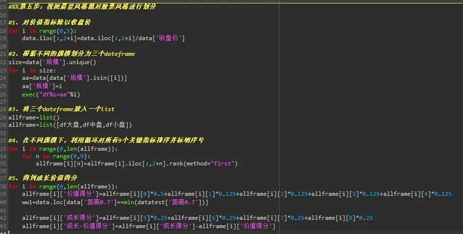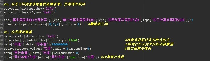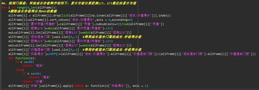 (2)根据不同的规模划分为三个dateframe,分别为“df大盘”、“df中盘”、“df小盘”。