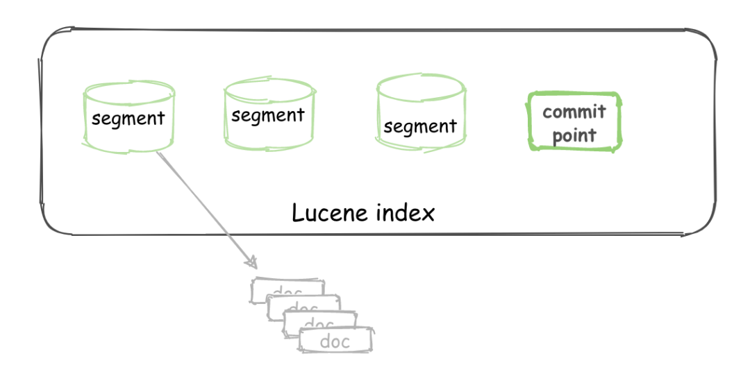 Lucene index:“a collection of segments plus a commit point”。由一堆 Segment 的集合加上一个提交点组成。