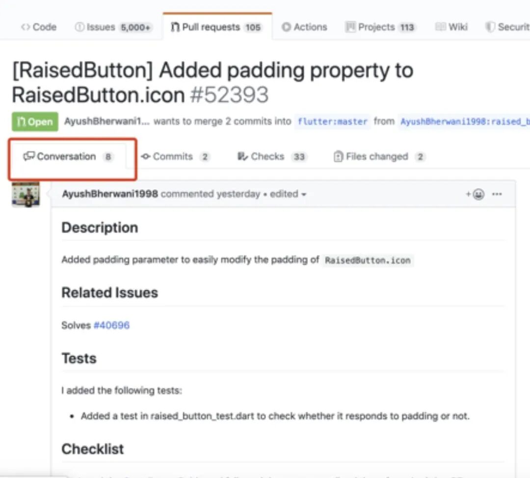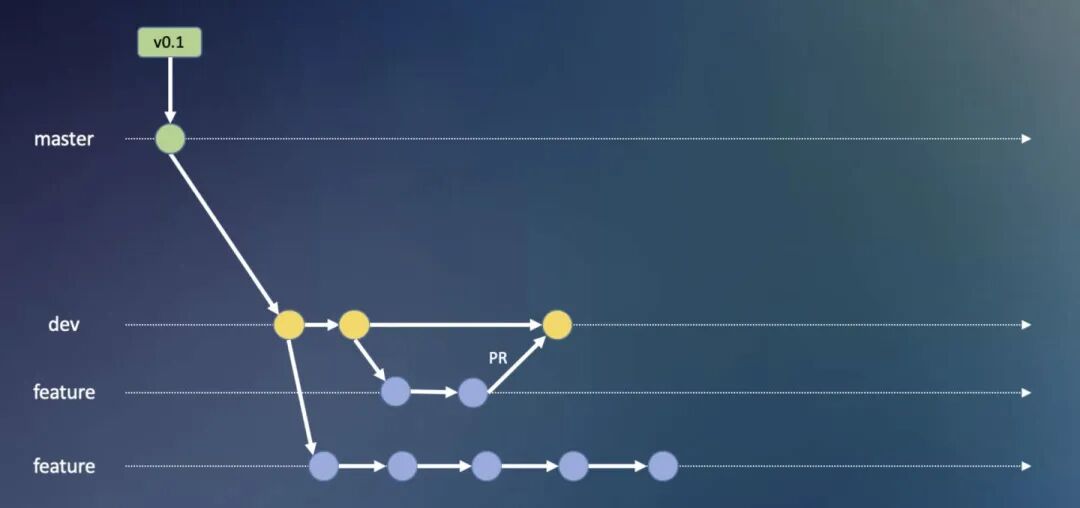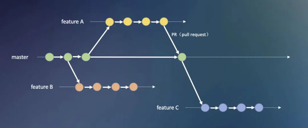 最后介绍一种开源项目常用的工作流 ——Forking 工作流,介绍之前首先需要了解什么是 fork 操作,如图 5.1 所示fork 操作是在个人远程仓库新建一份目标远程仓库的拷贝,操作很简单,比如 github 上在项目的主页点击 fork 按钮即可。明白了 fork 操作之后,我们来看下 forking 工作流的流程,如图 5.2 所示:首先开发者 A 拥有一个远端仓库,这时候有一个开发者 C 也想参与 A 的这个项目的开发工作,那他就可以 fork 一份 A 的这个仓库,之后在 c 的个人仓库里就有了这份代码库,后续开发者 C 就可以在自己的这个项目里进行开发工作,c 在完成了某个功能的实现之后,可以给 A 的仓库发一个 PR 请求,这时候会通知到开发者 A 有新的 PR,A 如果有问题可以直接在这个 PR 里提,开发者 C 可以进行进一步的修改,最后 A 通过了 C 的这份 PR 请求,就会将 C 的代码合并进 A 的仓库,这样就完成了 A / 代码库新特性的开发。同时如果有其他开发者对 A 的项目有兴趣也会进行相同的操作。这里注意到 开发者 B/C 并不是 A 代码库的开发人员,而是第三方开发者,所以这种工作流主要用于开源项目!