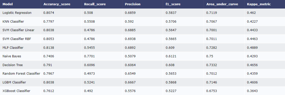 假如我们关注roc指标,从模型表现效果来看,Naive Bayes效果最好。