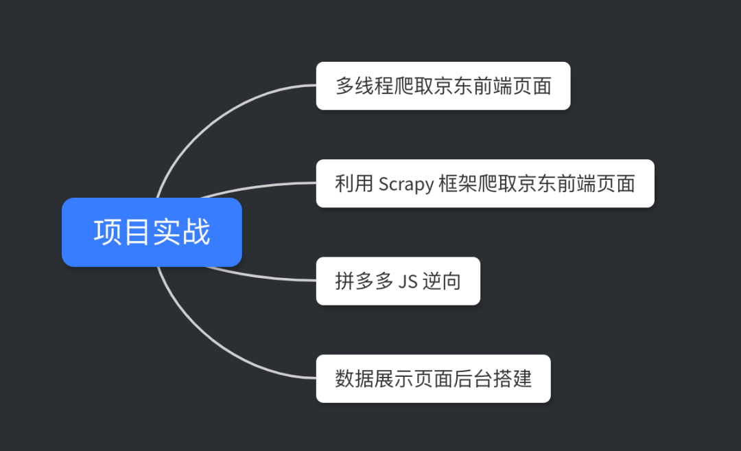 只要你能完全的掌握,找到一份薪资 10K 以上的工作完全是没有问题。开始我们会教大家基础的编程知识,让大家对编程有一个正确的认知。后来就开始教大家相关的基础,都是工作上需要的能力。这也是我们培训班第二个优势:教会市场最需要的实战项目。在前面我们也给大家说过,想要找到一份不错的工作,最重要的就是项目经验。大家仔细看项目实战,我们会教大家爬虫最有难度也最有用的知识点:scrapy + js 逆向。这个实战项目就是教大家爬取电商的网站,但凡做过一点爬虫的同学,都应该知道电商网站是最难爬取的数据。你如果有能力爬取电商网站的数据,爬虫的工作真的随便选。我们就是要把市面上最难、也是最有用的技术,通过大白话,都教会给大家。除了电商爬虫实战的项目, 我们还会教会大家 web 项目的搭建。
