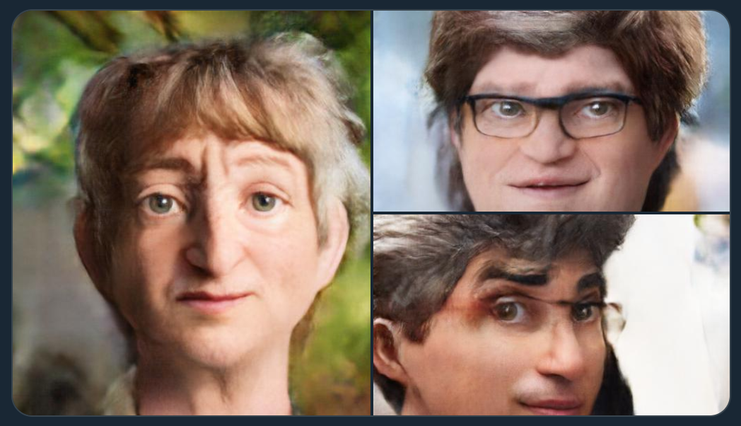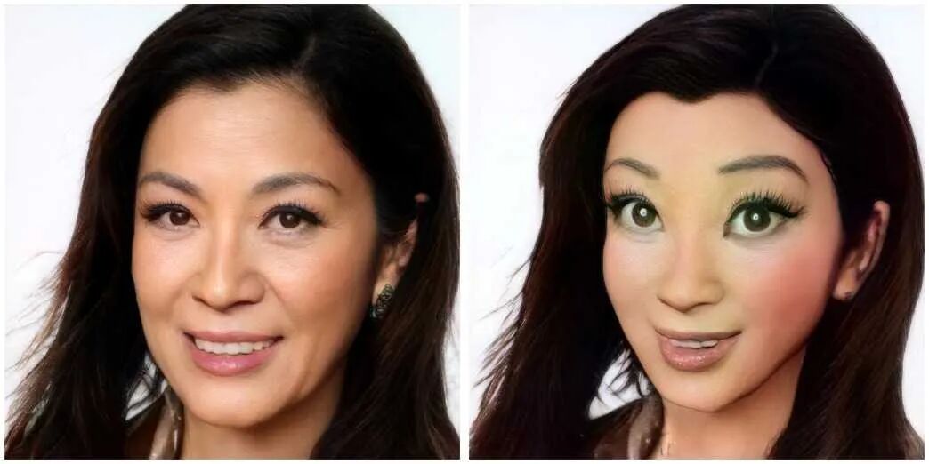华裔女演员杨紫琼的动画形象逼真复刻了真人头像,头发丝儿、脸上的纹路都很一致。甚至还有深度学习三巨头 Geoffrey Hinton、Yann LeCun 和 Yoshua Bengio: