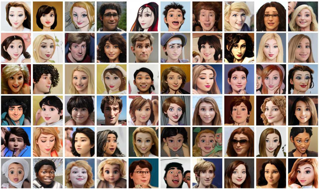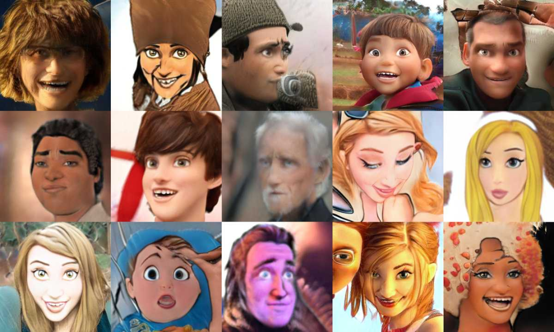 二次元角色在三次元世界有了对应,那我们三次元的人类能否拥有属于自己的动画角色呢?前不久,喜欢研究生成艺术的 Justin Pinkney 和 Doron Adler 创建了网站 Toonify Yourself!,只需上传真人图像,就能一键生成动画形象,就像刚从迪士尼 / 皮克斯 / 梦工厂的动画电影中走出来一样。例如:
