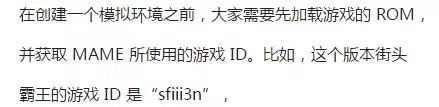该命令会打开 MAME 模拟器,你可以从游戏列表中选择你所要的那款游戏。游戏的 ID 通常位于标题后面的括号中。