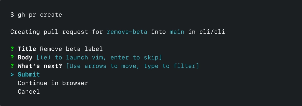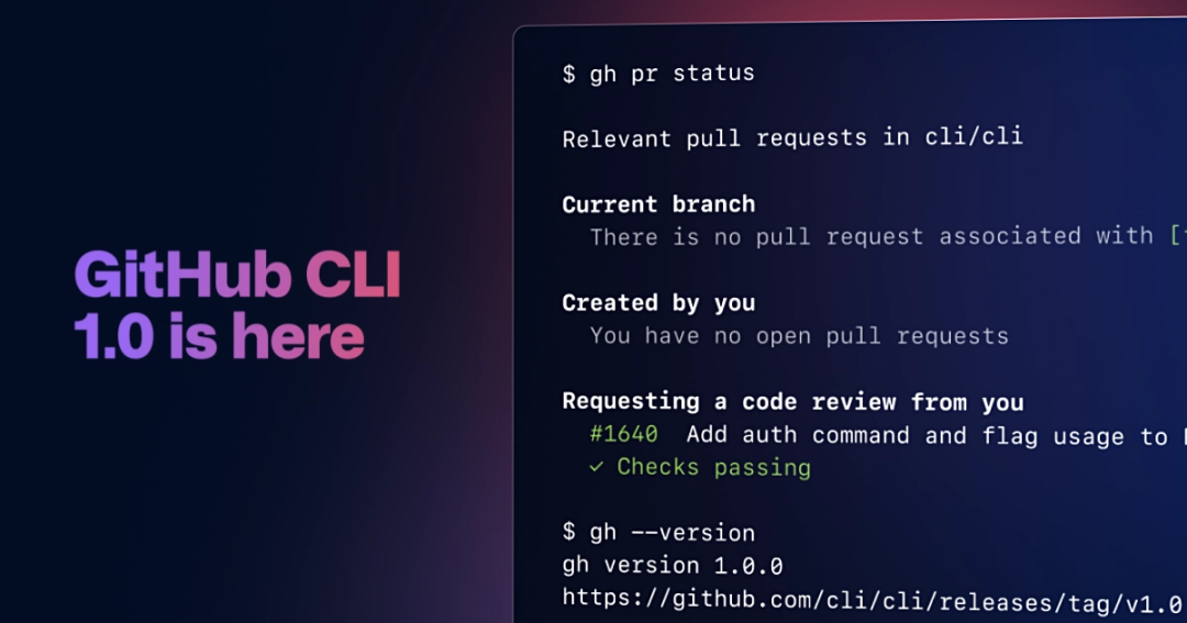经过大半年的迭代与完善,GitHub CLI已经成功从beta版升级为1.0正式版,可供所有用户使用。