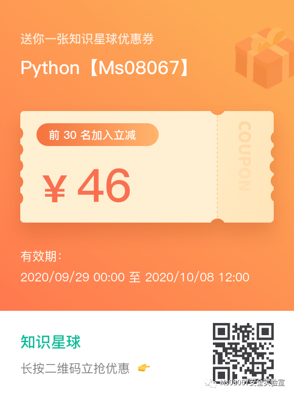 如果你立志成为一名合格的安全从业者,想突破“脚本小子”的瓶颈,成为真正的黑客,想拥有自己打造出来的属于自己的神兵利器!《Python安全攻防:渗透测试实战指南》出版了,配套星球(视频讲解)也推出了!