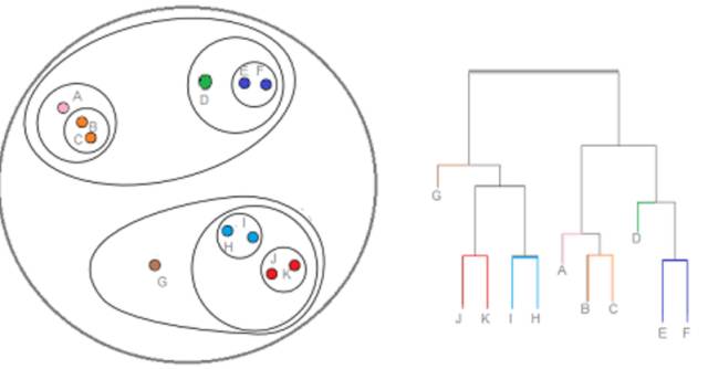 重复这一过程直到只留下一个集群,因此就得到了集群的层次结构。