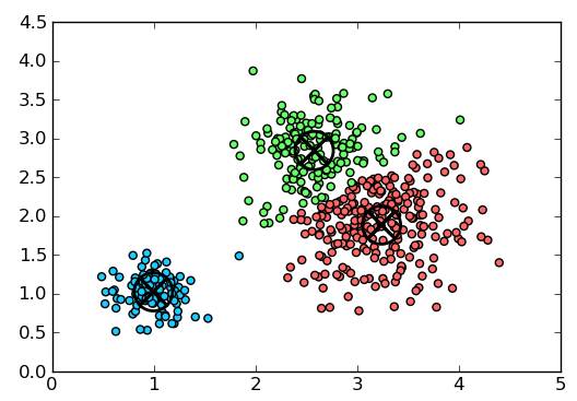K 均值聚类是一种通用目的的算法,聚类的度量基于样本点之间的几何距离(即在坐标平面中的距离)。集群是围绕在聚类中心的族群,而集群呈现出类球状并具有相似的大小。聚类算法是我们推荐给初学者的算法,因为该算法不仅十分简单,而且还足够灵活以面对大多数问题都能给出合理的结果。