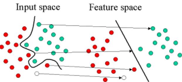 支持向量机中的核函数采用非线性变换,将非线性问题变换为线性问题